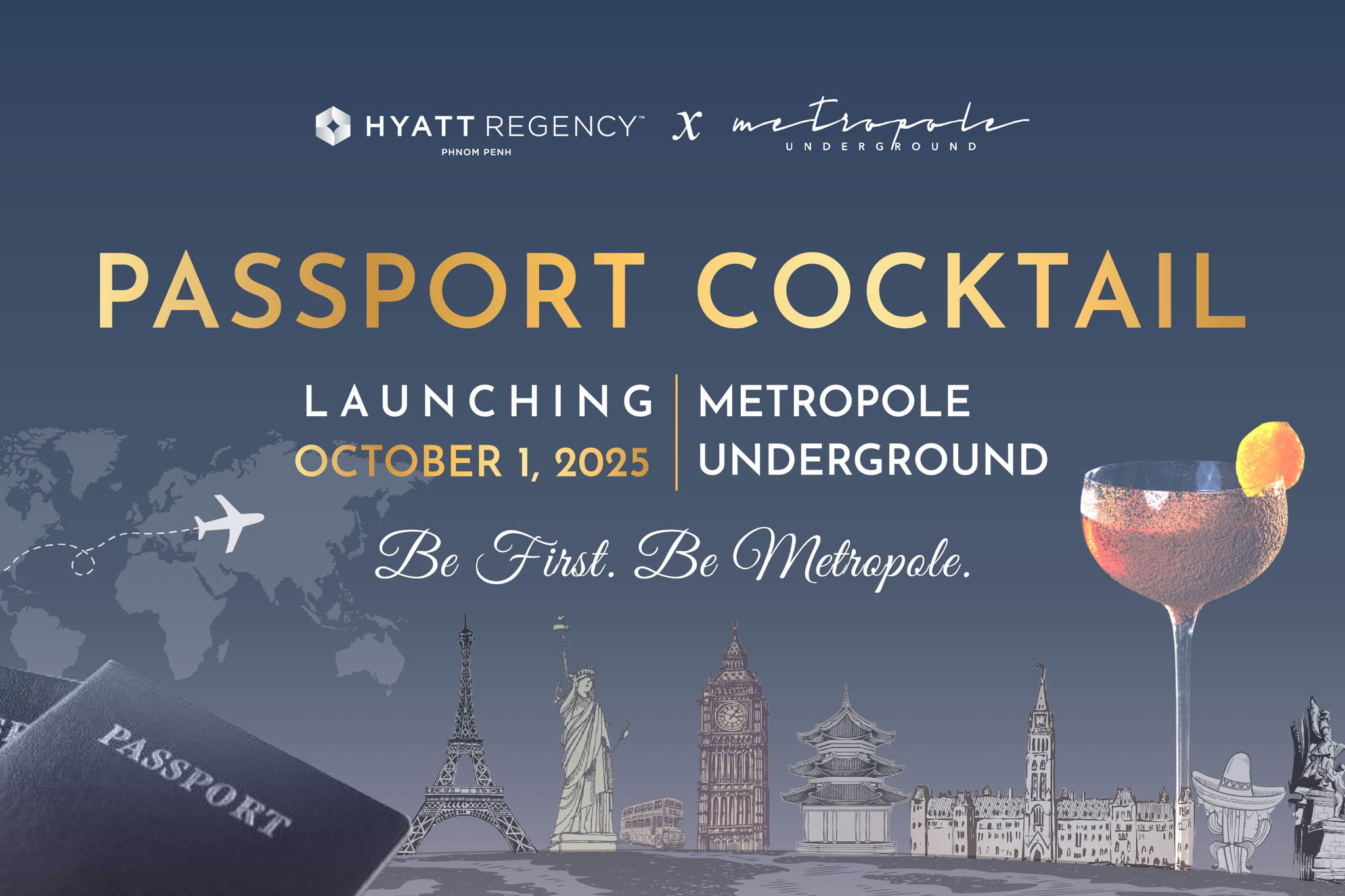 សណ្ឋាគារ ហៃយ៉ាត់ រីជិនស៊ី ភ្នំពេញ មានក្តីសោមនស្សរីករាយក្នុងការបង្ហាញម៉ឺនុយថ្មីដែលបំផុតគំនិតច្នៃប្រតិដ្ឋក្រោមប្រធានបទ “Passport Cocktail & Metro-Bar” នៅមេត្រូប៉ូល អាន់ដឺក្រោន ជាបារក្រោមដីដំបូងគេបង្អស់នៅទីក្រុងភ្នំពេញ ជាកន្លែងកម្សាន្តដែលមានរចនាប័ទ្មស្រដៀងទៅនឹងទីក្រុងប៉ារីសនាសម័យដើមទសវត្សរ៍ទី២០ ផ្ទៃខាងក្នុងមានភាពទាក់ទាញ ប្រណិត ទំនើប ទាន់សម័យ ល្អបំផុតសម្រាប់ការជួបជុំគ្នា។