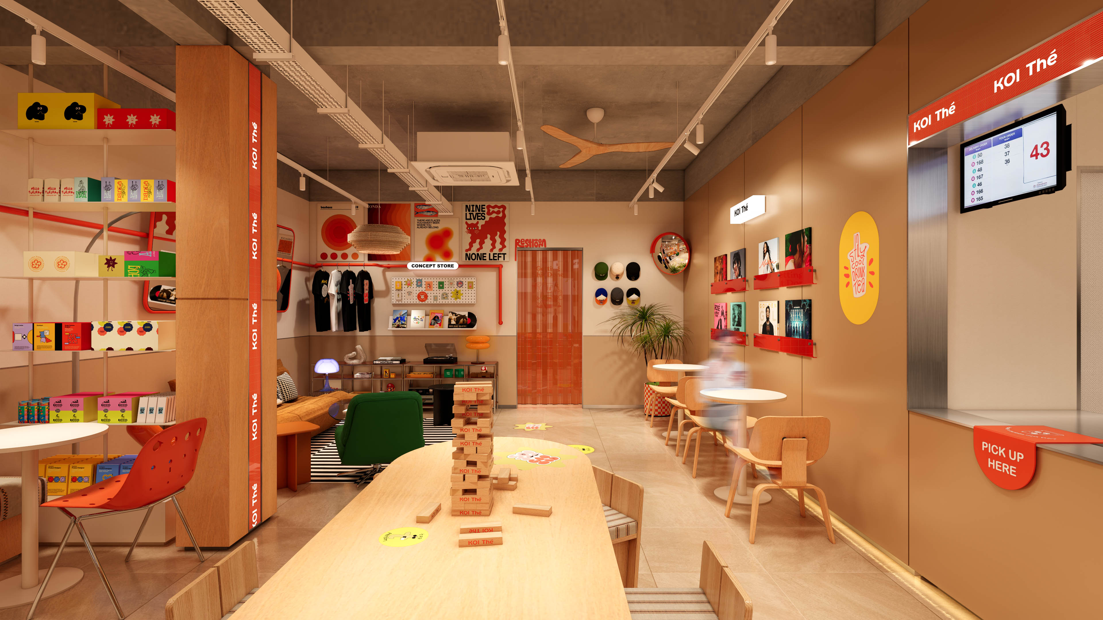 KOI Thé GENZ គឺជាការរចនានៃចលនា មានភាពក្លាហាន និងពោរពេញទៅដោយគំនិតច្នៃប្រតិដ្ឋរបស់យុវជនជំនាន់ថ្មី ឬ Gen Z។ មានការរចនាបែបជាប្លុកពណ៌ភ្លឺ ការបំភ្លឺបរិយាកាស និងតំបន់កៅអីដែលអាចបត់បែនបាន ពីកន្លែងសម្រាប់ម្នាក់ឯងទៅសាឡុងរួមគ្នា ដែលស្វាគមន៍បុគ្គលិកលក្ខណៈចម្រុះ។ ចំណុចសំខាន់មួយគឺបន្ទះ LED អន្តរកម្មនៅបញ្ជរ និងតំបន់លេងហ្គេមដែលបានកំណត់ ដែលបានផ្លាស់ប្តូរហាងកាហ្វេទៅជាកន្លែងកម្សាន្តធម្មតា។