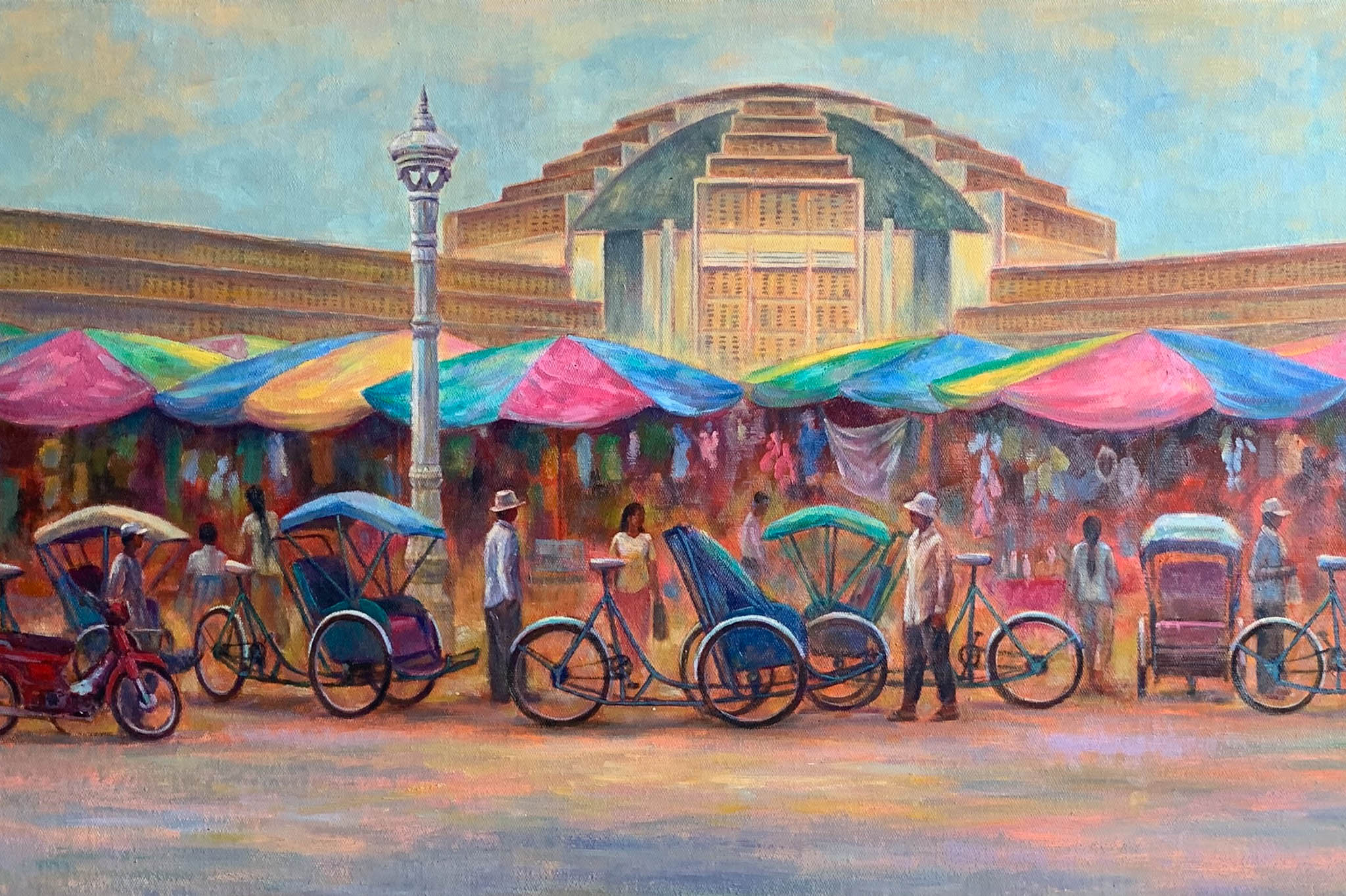 តាមរយៈការសន្ទនាជាមួយក្រុមការងាររបស់ សូវរីន វិចិត្រកររូបនេះបានបញ្ជាក់ថា បច្ចេកទេសនៃការគូរគំនូររបស់ខ្លួនគឺជាការរូមបញ្ចូលគ្នានូវពណ៌ស្រទន់ (Pastel tones) ហើយជារឿយៗ លោកតែងតែលាយបញ្ចូលប្រភេទពណ៌ដូចជា៖ ប្រភេទពណ៌ប្រេង ប្រភេទពណ៌អាគ្រីលីក (Acrylic) ឬប្រភេទពណ៌ទឹក (Watercolour) ដើម្បីបង្កើតបាននូវសាច់ពណ៌ (Texture) ដែលផ្តល់អារម្មណ៍ទាំងភាពទន់ភ្លន់ និងភាពស៊ីជម្រៅ។ ក្នុងចំណោមគំនូររបស់លោកផ្ទាល់ ខូឡិកហ្សិនដែលមានឈ្មោះថា “ភាពរស់រវើកនៃទីក្រុង” (Urban Liveliness) គឺជាស្នាដៃសិល្បៈមួយដែលលោកស្រឡាញ់បំផុត។ លោកបានបញ្ជាក់ថា៖ ផ្ទាំងគំនូរនេះបង្ហាញពីចង្វាក់នៃជីវិតរស់នៅប្រចាំថ្ងៃក្នុងរាជធានីភ្នំពេញ ដោយផ្តោតសំខាន់ទៅលើផ្សារធំថ្មី ដែលជាសំណង់និមិត្តរូបដ៏ល្បីល្បាញបំផុតមួយរបស់កម្ពុជា។ វិចិត្រករនេះបង្ហាញថា “អ្វីដែលខ្ញុំចង់បង្ហាញ មិនមែនត្រឹមតែរចនាបថស្ថាបត្យកម្មនៃតួផ្សារនោះទេ ប៉ុន្តែគឺស្មារតីរបស់មនុស្សជាតិដែលបំពេញទីនោះឱ្យមានជីវិត៖ រាប់ចាប់តាំងពីអ្នកធាក់ស៊ីក្លូដែលកំពុងរង់ចាំម៉ូយ អ្នកលក់ដូរដែលកំពុងរៀបចំឆ័ត្រចម្រុះពណ៌របស់ពួកគេ និងមនុស្សម្នាដែលកំពុងធ្វើដំណើរយ៉ាងស្រទន់កាត់ពន្លឺព្រះអាទិត្យនាពេលព្រឹកព្រលឹម។” វិចិត្រកររូបនេះបញ្ជាក់ថា “សម្រាប់រូបខ្ញុំ ផ្ទាំងគំនូរនេះតំណាងឱ្យភាពធន់ និងថាមពលនៃជីវិតខ្មែរ គឺជារូបភាពដែលបង្ហាញថាមនុស្សគ្រប់គ្នានៅតែបន្តធ្វើការ មានស្នាមញញឹម និងរស់នៅដោយក្ដីសង្ឃឹម ទោះបីជាត្រូវប្រឈមនឹងការលំបាកក្នុងជីវិតប្រចាំថ្ងៃយ៉ាងណាក៏ដោយ។ ការលាយបញ្ចូលគ្នានៃពណ៌ក្ដៅ និងពណ៌ត្រជាក់ ឆ្លុះបញ្ចាំងពីសុខដុមរមនា និងភាពចម្រុះនៅក្នុងទីក្រុង។ រាល់ពណ៌ និងចលនានៅក្នុងគំនូរនេះ រំលឹកខ្ញុំអំពីភាពស្រស់ស្អាតដែលយើងអាចស្វែងរកបាននៅក្នុងខណៈវេលាដ៏សាមញ្ញបំផុត។ជាក់ស្តែង ស្នាដៃនេះមានអត្ថន័យពិសេសជ្រាលជ្រៅក្នុងចិត្តរបស់ខ្ញុំ ព្រោះវាមិនត្រឹមតែជាការចងចាំអំពីភ្នំពេញប៉ុណ្ណោះទេ ប៉ុន្តែក៏ជាការឆ្លុះបញ្ចាំងពីរបៀបដែលខ្ញុំមើលឃើញប្រទេសកម្ពុជានាពេលបច្ចុប្បន្ន គឺជានិទស្សន្តនៃភាពរស់រវើក រឹងមាំ និងពោរពេញដោយថាមពលជីវិតផងដែរ៕”