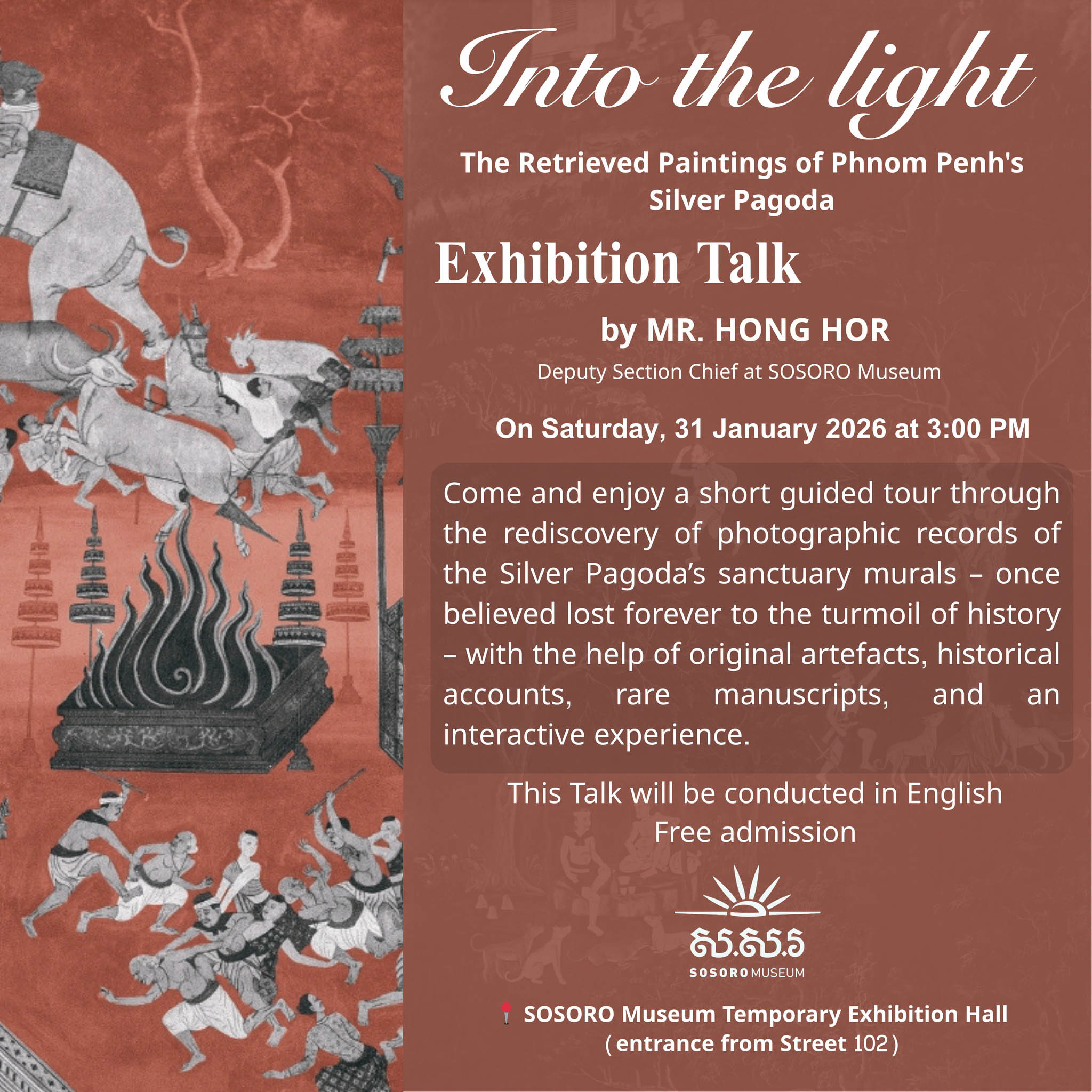 នៅរសៀលថ្ងៃសៅរ៍ ទី៣១ ឆ្នាំ២០២៦ ខាងមុខនេះ ស្ថិតនៅសារមន្ទីព្រះស្រីឦសានវរ្ម័ន ពិព័រណ៍មិនអចិន្ត្រៃយ៍ (ច្រកចូលផ្លូវ១០២) នឹងមានការរៀបចំបទបង្ហាញពីការតាំងពិព័រណ៍ដ៏ទាក់ទាញមួយក្រោមប្រធានបទ ការលេចត្រដែតឡើងវិញ ៖ ការបាត់បង់ និងរកឃើញឡើងវិញនូវគំនូរ ក្នុងព្រះវិហារព្រះកែវមរកត» ។ ការប្រារព្ធការតាំងពិព័រណ៍នេះនឹងផ្តល់ឲ្យអ្នកចូលរួមបានឈ្វេងយល់នូវចំណេះដឹងអំពីប្រវត្តិសាស្ត្រខ្មែរ ក៏ដូចជាបង្ហាញពីការរកឃើញឡើងវិញនូវគំនូរ ក្នុងព្រះវិហារព្រះកែវមរកត ដែលធ្លាប់ត្រូវបានគេជឿថាបានបាត់បង់ជារៀងរហូតទៅហើយ ដោយសារភាពចលាចលនៃប្រវត្តិសាស្ត្រ ដោយមានការតាំងបង្ហាញអំពីវត្ថុបុរាណ រឿងរ៉ាវប្រវត្តិសាស្ត្រ សាស្ត្រាស្លឹករឹតដ៏កម្រ និងបទពិសោធន៍អន្តរកម្ម។ មិនត្រឹមតែប៉ុណ្ណោះ នៅក្នុងការតាំងពិព័រណ៍នេះ នឹងមានការចូលរួមធ្វើជាមគ្គុទេ្ទសក៍ ដោយលោក ហ៊ុយ ហុងរី ប្រធានផ្នែក សារមន្ទីរ ស.ស.រ និង លោក ហុង ហ័រ អនុប្រធានផ្នែក សារមន្ទីរ ស.ស.រ ផងដែរ។
