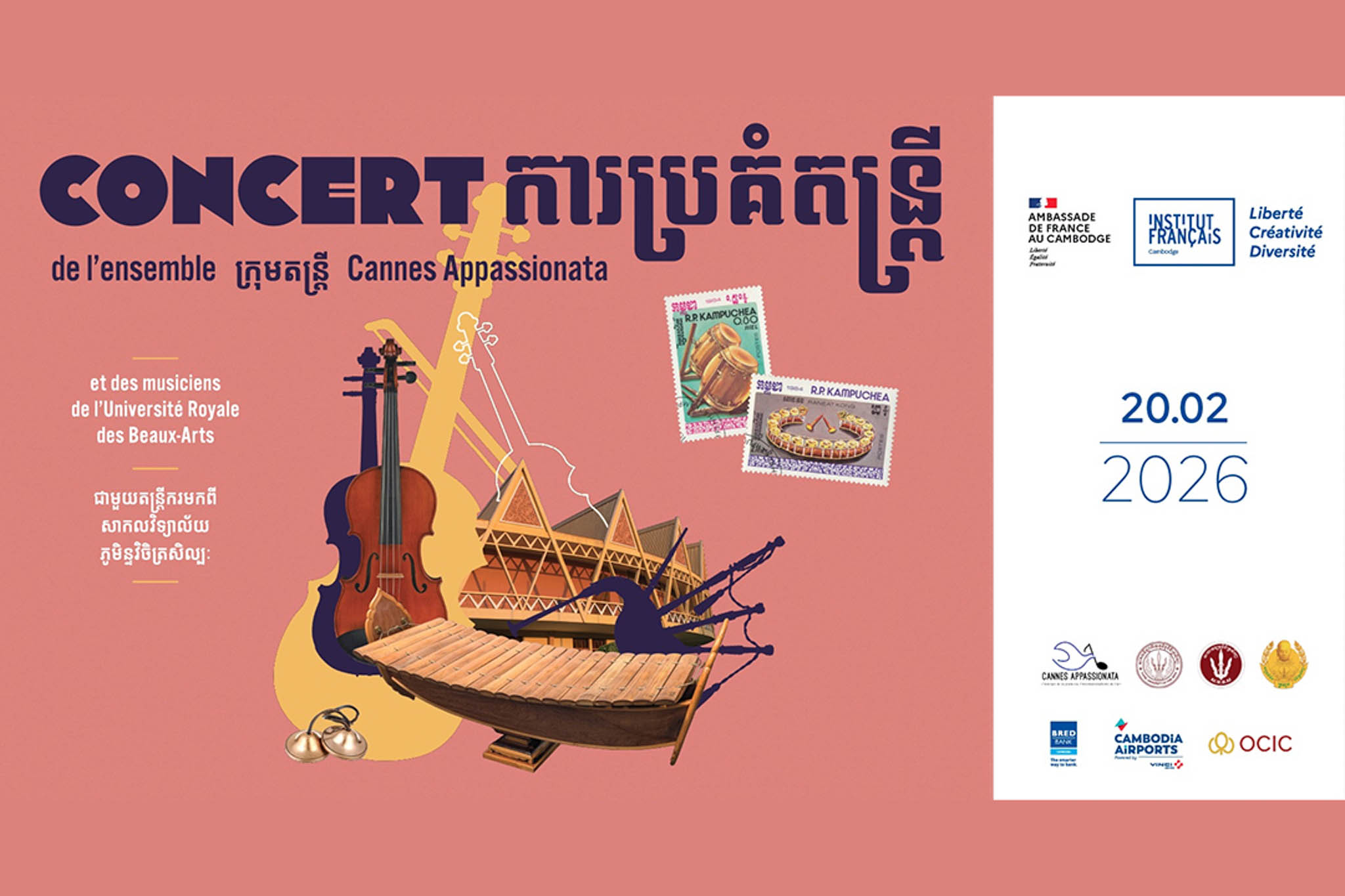 ក្រុមតន្ត្រី Cannes Appassionata និងតន្ត្រីករមកពីសាកលវិទ្យាល័យភូមិន្ទវិចិត្រសិល្បៈ នឹងប្រគំតន្ត្រីឥតគិតថ្លៃ