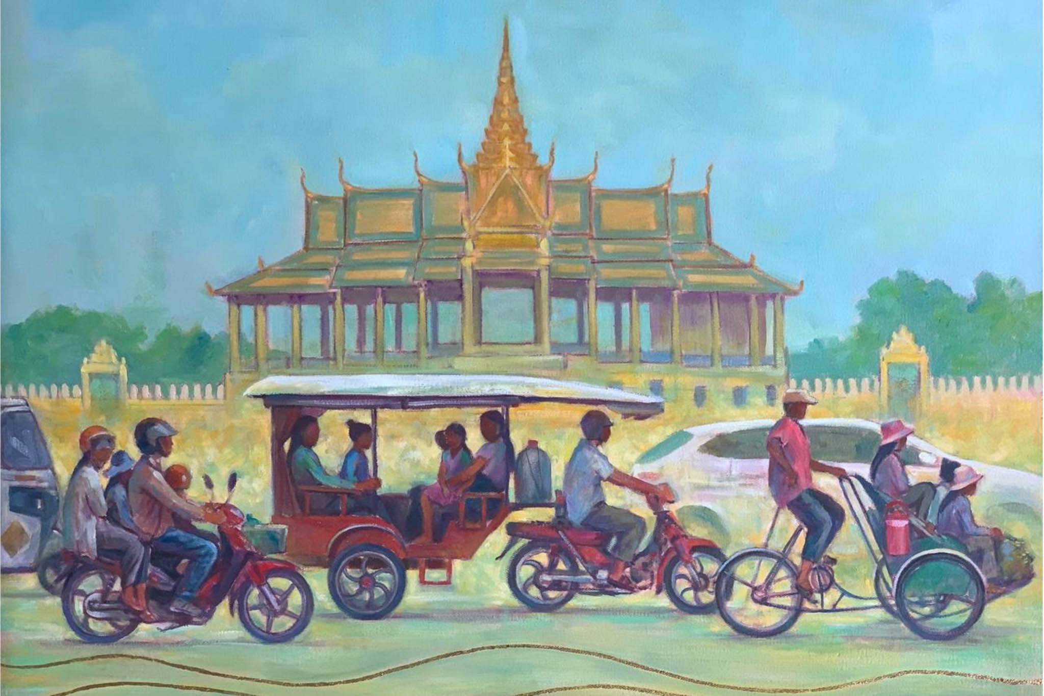 តាមរយៈការសន្ទនាជាមួយក្រុមការងាររបស់ សូវរីន វិចិត្រកររូបនេះបានបញ្ជាក់ថា បច្ចេកទេសនៃការគូរគំនូររបស់ខ្លួនគឺជាការរូមបញ្ចូលគ្នានូវពណ៌ស្រទន់ (Pastel tones) ហើយជារឿយៗ លោកតែងតែលាយបញ្ចូលប្រភេទពណ៌ដូចជា៖ ប្រភេទពណ៌ប្រេង ប្រភេទពណ៌អាគ្រីលីក (Acrylic) ឬប្រភេទពណ៌ទឹក (Watercolour) ដើម្បីបង្កើតបាននូវសាច់ពណ៌ (Texture) ដែលផ្តល់អារម្មណ៍ទាំងភាពទន់ភ្លន់ និងភាពស៊ីជម្រៅ។ ក្នុងចំណោមគំនូររបស់លោកផ្ទាល់ ខូឡិកហ្សិនដែលមានឈ្មោះថា “ភាពរស់រវើកនៃទីក្រុង” (Urban Liveliness) គឺជាស្នាដៃសិល្បៈមួយដែលលោកស្រឡាញ់បំផុត។ លោកបានបញ្ជាក់ថា៖ ផ្ទាំងគំនូរនេះបង្ហាញពីចង្វាក់នៃជីវិតរស់នៅប្រចាំថ្ងៃក្នុងរាជធានីភ្នំពេញ ដោយផ្តោតសំខាន់ទៅលើផ្សារធំថ្មី ដែលជាសំណង់និមិត្តរូបដ៏ល្បីល្បាញបំផុតមួយរបស់កម្ពុជា។ វិចិត្រករនេះបង្ហាញថា “អ្វីដែលខ្ញុំចង់បង្ហាញ មិនមែនត្រឹមតែរចនាបថស្ថាបត្យកម្មនៃតួផ្សារនោះទេ ប៉ុន្តែគឺស្មារតីរបស់មនុស្សជាតិដែលបំពេញទីនោះឱ្យមានជីវិត៖ រាប់ចាប់តាំងពីអ្នកធាក់ស៊ីក្លូដែលកំពុងរង់ចាំម៉ូយ អ្នកលក់ដូរដែលកំពុងរៀបចំឆ័ត្រចម្រុះពណ៌របស់ពួកគេ និងមនុស្សម្នាដែលកំពុងធ្វើដំណើរយ៉ាងស្រទន់កាត់ពន្លឺព្រះអាទិត្យនាពេលព្រឹកព្រលឹម។” វិចិត្រកររូបនេះបញ្ជាក់ថា “សម្រាប់រូបខ្ញុំ ផ្ទាំងគំនូរនេះតំណាងឱ្យភាពធន់ និងថាមពលនៃជីវិតខ្មែរ គឺជារូបភាពដែលបង្ហាញថាមនុស្សគ្រប់គ្នានៅតែបន្តធ្វើការ មានស្នាមញញឹម និងរស់នៅដោយក្ដីសង្ឃឹម ទោះបីជាត្រូវប្រឈមនឹងការលំបាកក្នុងជីវិតប្រចាំថ្ងៃយ៉ាងណាក៏ដោយ។ ការលាយបញ្ចូលគ្នានៃពណ៌ក្ដៅ និងពណ៌ត្រជាក់ ឆ្លុះបញ្ចាំងពីសុខដុមរមនា និងភាពចម្រុះនៅក្នុងទីក្រុង។ រាល់ពណ៌ និងចលនានៅក្នុងគំនូរនេះ រំលឹកខ្ញុំអំពីភាពស្រស់ស្អាតដែលយើងអាចស្វែងរកបាននៅក្នុងខណៈវេលាដ៏សាមញ្ញបំផុត។ជាក់ស្តែង ស្នាដៃនេះមានអត្ថន័យពិសេសជ្រាលជ្រៅក្នុងចិត្តរបស់ខ្ញុំ ព្រោះវាមិនត្រឹមតែជាការចងចាំអំពីភ្នំពេញប៉ុណ្ណោះទេ ប៉ុន្តែក៏ជាការឆ្លុះបញ្ចាំងពីរបៀបដែលខ្ញុំមើលឃើញប្រទេសកម្ពុជានាពេលបច្ចុប្បន្ន គឺជានិទស្សន្តនៃភាពរស់រវើក រឹងមាំ និងពោរពេញដោយថាមពលជីវិតផងដែរ៕”
